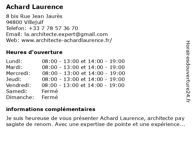| Lundi | 08:00-13:00 et 14:00-19:00 |