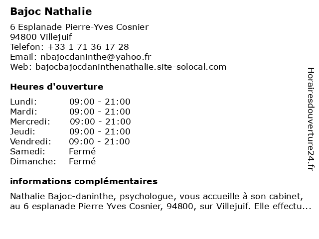1 E.S Vitry - Sport Gym Plaisir - Gym d'Entretien - Nathalie (Distance: 1,92 km) 17/19 Allée du Coteau, 94400 Vitry sur Seine centre, cours, d'entretien, e.s, gym, l'exercice, muscles, nathalie, plaisir, salles, santé, sport, vitry 2 Nathalie Fitton - Orthoptiste (Distance: 2,21 km) 12-14 Rue du Général de Gaulle, 94400 Vitry-sur-Seine consultation, docteur, fitton, med, médecin, médecine, nathalie, orthoptiste, traitement 3 Lespessailles Van Vynckt Nathalie (Distance: 3,06 km) 26 Rue de Verdun, 94230 Cachan lespessailles, nathalie, van, vynckt 4 Medecin Nathalie Le Toux (Chirurgien viscéral) (Distance: 3,74 km) 11 Ponscarme, 75013 Paris chirurgien, docteur, le, medecin, nathalie, sante, services, toux, viscéral 5 6 Nathalie Sibony - Psychologue (Distance: 4,20 km) 138 Rue Nationale, 75013 Paris cabinets, médecins, nathalie, psychologue, secrétariat, sibony, thérapies |