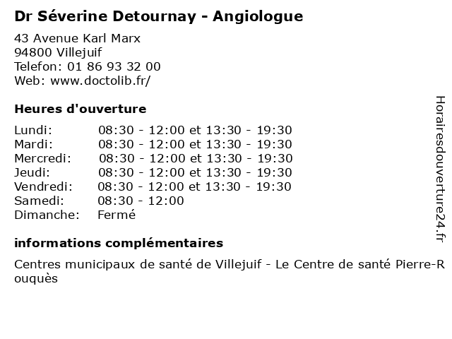 | Jeudi | 08:30-12:00 et 13:30-19:30 |