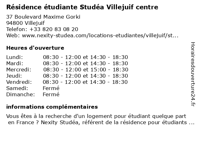 | Lundi | 08:30-12:00 et 14:30-18:30 |