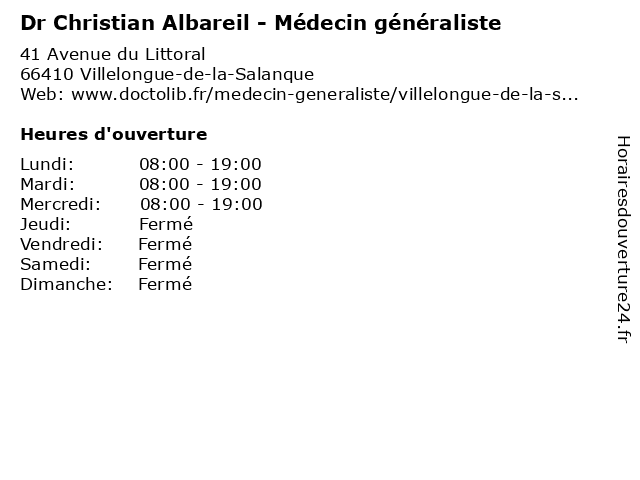 | Mercredi | 08:00-19:00 |