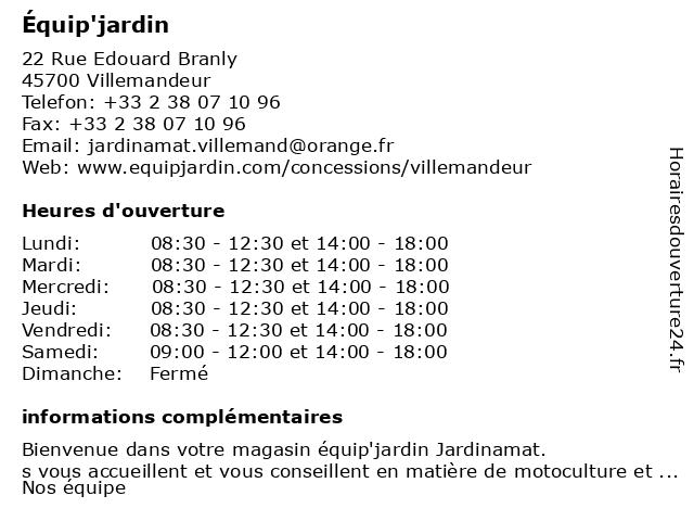 | Samedi | 09:00-12:00 et 14:00-18:00 |