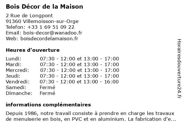 | Lundi | 07:30-12:00 et 13:00-17:00 |