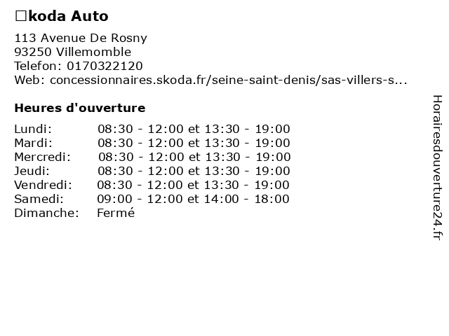 | Lundi | 08:30-12:00 et 13:30-19:00 |