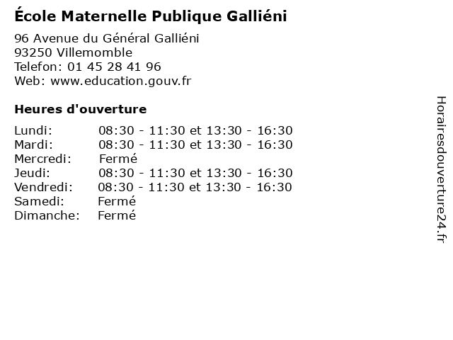 Lundi | 08:30-11:30 et 13:30-16:30 |