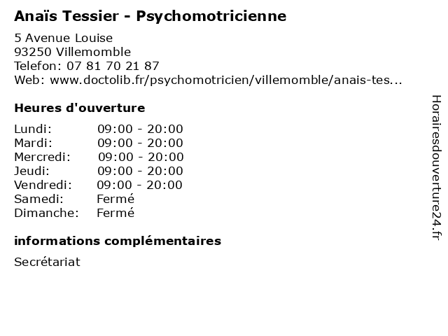 1 Maître Anaïs Courier - Avocate (Distance: 4,39 km) 3 boulevard de l'Europe, 93190 Livry-Gargan anaïs, avocate, avocats, civils, courier, droits, juridiques, maître 2 Nathalie Chambon - Psychomotricienne (Distance: 4,61 km) 3 Avenue Louis Barrault, 93600 Aulnay-sous-Bois chambon, nathalie, psy, psychiatre, psychomotricienne, sante, soins 3 Anaïs Barbier - Ostéopathe (Distance: 4,70 km) 120 Avenue du Maréchal Joffre, 94120 Fontenay-sous-Bois anaïs, barbier, osteo, osteopathe, ostéopathe, sante, soins 4 Anaïs Legendre - Masseur-kinésithérapeute (Distance: 5,19 km) 192 Rue Jean Jaurès, 93230 Romainville anais, anaïs, kiné, kinésithérapeute, legendre, masseur, rééducation, soin 5 Dr Anaïs Fontalirant - Médecin généraliste (Distance: 5,58 km) 17 Rue des Coudes Cornettes, 93230 Romainville anais, anaïs, docteur, dr, fontalirant, generaliste, généraliste, medecin, médecin, soins 6 Anaïs Heinen Tapisserie (Distance: 5,61 km) 13 rue Baudin, 93100 Montreuil anaïs, anaïs heinen, heinen, montreuil, restauration, tapisserie |