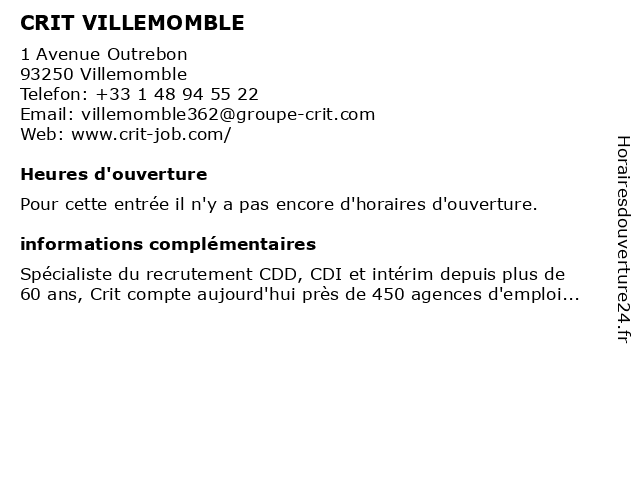 Termes de recherche pour CRIT VILLEMOMBLE:villemomble, crit |