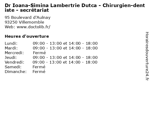 | Lundi | 09:00-13:00 et 14:00-18:00 |