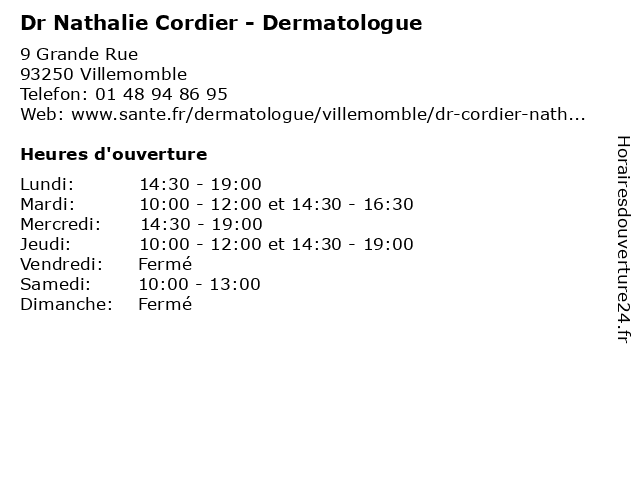 | Jeudi | 10:00-12:00 et 14:30-19:00 |
