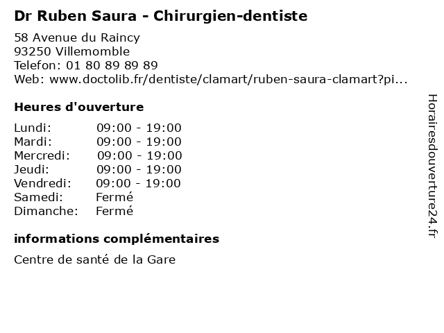 1 Dr Ruben Saura - Chirurgien-dentiste (Distance: 10,41 km) 60 Rue du Château Landon, 75010 Paris chirurgien, dentiste, dr, médecin, médecine, médical, pharmaceutique, ruben, saura, traitement 2 Dr Ruben Saura - Chirurgien-dentiste (Distance: 11,26 km) 6 Boulevard de Strasbourg, 75010 Paris chirurgien, chirurgien-dentiste, dentiste, dr, médecins, médicaments, ruben, santé, saura, secrétariat, spécialiste 3 Dr Ruben Saura - Chirurgien-dentiste (Distance: 13,94 km) 34 Avenue Youri Gagarine, 94400 Vitry-sur-Seine chirurgie, chirurgien, dentaire, dentiste, dr, ruben, saura 4 Dr Laurent Ruben - Chirurgien-dentiste - secrétariat (Distance: 5,70 km) 74 Avenue Henri Barbusse, 93700 Drancy chirurgien, dentiste, dr, laurent, médecin, médecine, médical, pharmaceutique, ruben, secrétariat, traitement 5 Dr Ruben Iman - Chirurgien-dentiste (Distance: 6,24 km) 29 Rue François Mitterrand, 93170 Bagnolet chirurgien, dentiste, dr, iman, médecin, médecine, médical, pharmaceutique, ruben, traitement 6 Ramonage Ruben (Distance: 9,31 km) 242 Boulevard Voltaire, 75011 Paris cheminée, fumiste paris, ramonage, ramonage paris, ramoneur, ruben |
