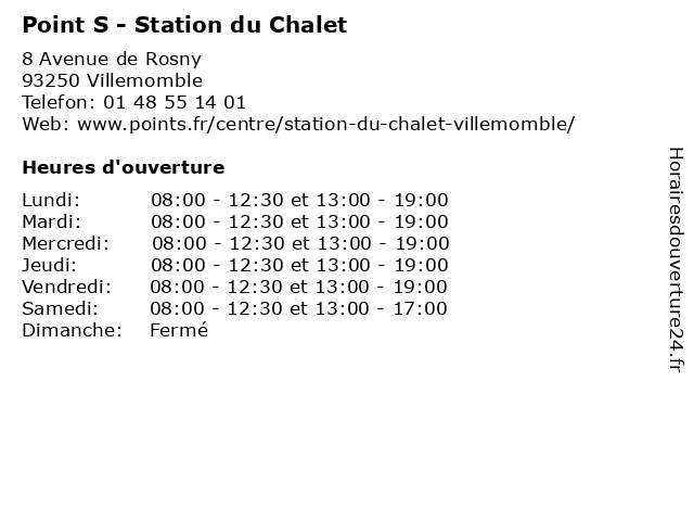 | Lundi | 08:00-12:30 et 13:00-19:00 |