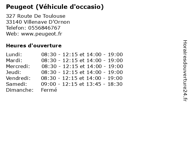 1 Peugeot (Véhicule d'occasio) (Distance: 4,34 km) 107 Rue Georges Bonnac, 33000 Bordeaux automobiles, concéssionnaire, d'occasio, garage, motos, peugeot, véhicule 2 Peugeot (Véhicule d'occasio) (Distance: 6,31 km) 84 Avenue de la Libération, 33110 Le Bouscat automobiles, concéssionnaire, d'occasio, garage, motos, peugeot, véhicule 3 Peugeot (Véhicule d'occasio) (Distance: 6,67 km) 254 Avenue De La Marne, 33700 Merignac automobiles, concéssionnaire, d'occasio, garage, motos, peugeot, véhicule 4 Peugeot (Distance: 0,00 km) 327 Route De Toulouse, 33140 Villenave D'Ornon automobiles, concéssionnaire, garage, motos, peugeot 5 Peugeot (Pièce de rechange) (Distance: 0,00 km) 327 Route De Toulouse, 33140 Villenave D'Ornon automobiles, concéssionnaire, de, garage, motos, peugeot, pièce, rechange 6 Peugeot Psa Retail - Véhicules neufs (Distance: 1,10 km) 411 Route de Toulouse, 33140 Villenave d'Ornon automobiles, concéssionnaire, garage, motos, neuf, neufs, peugeot, psa, retail, véhicule, véhicules |