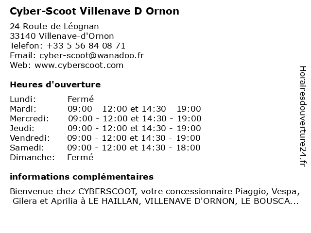 | Mardi | 09:00-12:00 et 14:30-19:00 |