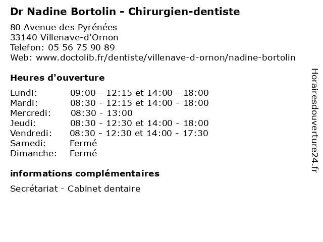 | Lundi | 09:00-12:15 et 14:00-18:00 |