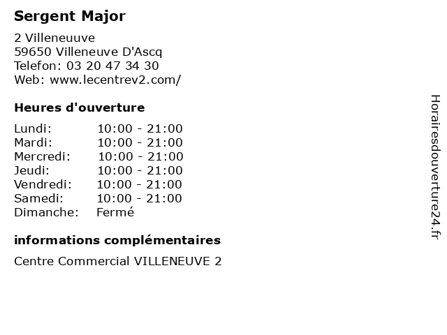 1 Sergent Major (Distance: 2,34 km) - Rue du Ventoux, 59650 Villeneuve-d'Ascq major, mode, sergent, vêtements 2 Sergent Major (Distance: 5,51 km) 80 Rue de Paris, 59800 Lille cafe, chaussures, enfants, homme, lingerie, major, mode femme, restaurant, sergent, service, shopping 3 Sergent Major (Distance: 6,25 km) 100 Centre Commercial, 59777 Lille centre, commercial, euralille, lille, major, sergent 4 Sergent Major (Distance: 6,39 km) 44 Mail de Lannoy, 59100 Roubaix accessories, beaute, cafe, chaussures, maison, major, mode enfants, mode femme, mode homme, sergent, sport 5 Sergent Major (Distance: 7,26 km) 1 Avenue de l'Europe, 59115 Leers beaute, bouygues, cafe, chausures, club, enfants, major, mode femmes, mode hommes, restaurant, sergent, sport, telecom 6 Sergent Major (Distance: 9,36 km) - Route de Vendeville, 59155 Faches-Thumesnil accessoires, bébé, enfants, magasin, major, prêt à porter, sergent, vêtements |