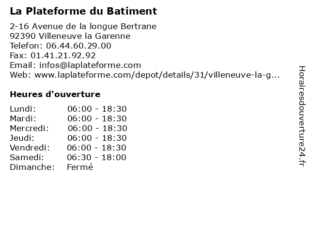 | Lundi | 06:00-18:30 |
