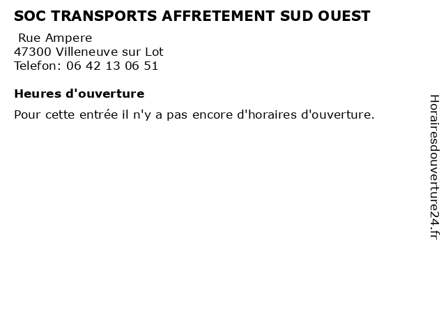 | Appeler SOC TRANSPORTS AFFRETEMENT SUD OUEST | |