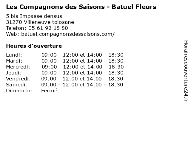 | Samedi | 09:00-12:00 et 14:00-18:30 |