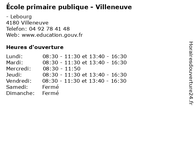 | Mardi | 08:30-11:30 et 13:40-16:30 |