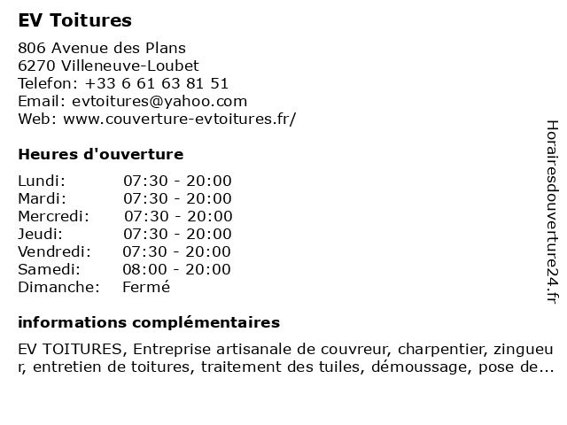 2 Robert G Toitures (Distance: 2,79 km) 435 Chemin Du Malvan, 06570 Saint-Paul-de-Vence artisan, installations, robert, toit. pose, toiture, toitures 4 Toitures Berger (Distance: 10,02 km) 74 Avenue Joseph Durandy, 06200 Nice bardage, berger, charpente, couverture, entretien toitures, isolation extérieur, pose de velux, toitures, zinguerie 5 SAS Côte & Toitures (Distance: 12,19 km) 9 rue Torrini, 06000 Nice bardage, charpente, couverture, côte, entretien toitures, isolation extérieur, pose de velux, sas, toitures, zinguerie 6 Créa'Toitures (Distance: 12,25 km) 86 Avenue Cyrnos, 06100 Nice bardage, charpente, couverture, créa'toitures, entretien toitures, isolation extérieur, pose de velux, zinguerie |