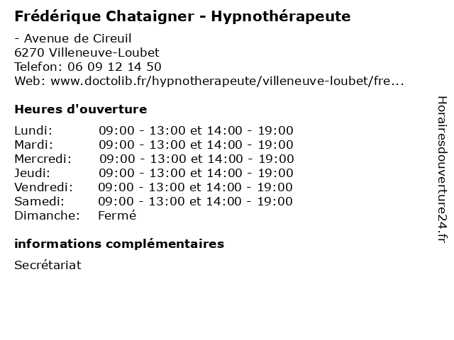 | Lundi | 09:00-13:00 et 14:00-19:00 |