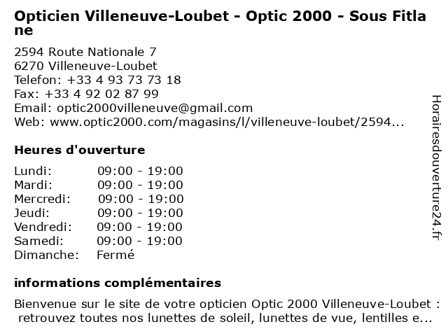 2 Opticien VILLENEUVE LOUBET Optical Center (Distance: 0,83 km) 1725 Route Nationale 7, 06270 Villeneuve-Loubet center, loubet, optical, opticien, villeneuve 3 Fitlane (Distance: 1,57 km) 970 Route Nationale 7, 06270 Villeneuve Loubet fitlane, gymnatique, salle de sport, sport 4 Opticien Générale d'Optique VILLENEUVE LOUBET (Distance: 1,65 km) 866 Route Nationale 7, 06270 Villeneuve-Loubet d'optique, générale, loubet, opticien, villeneuve 6 Atol Mon Opticien (Distance: 2,40 km) 495 Route de la Mer, 06410 Biot atol, atol les opticiens, atol mon opticien, lentilles, lunettes de soleil, lunettes de vue, mon, opticien, opticien biot |