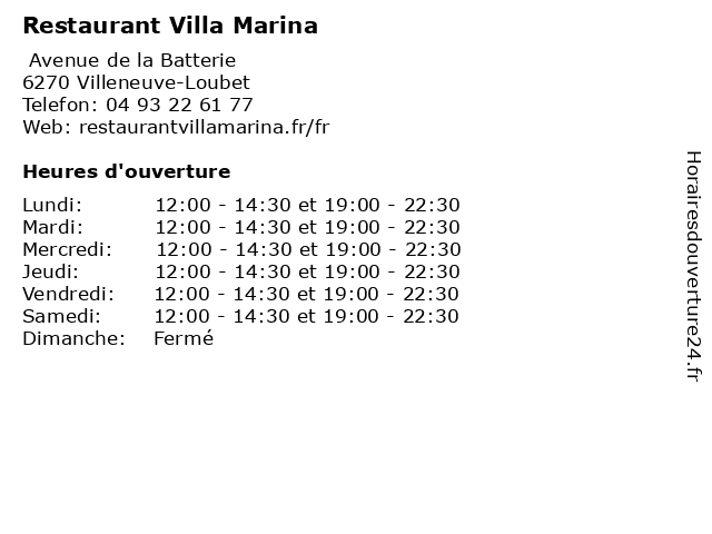 | Mardi | 12:00-14:30 et 19:00-22:30 |