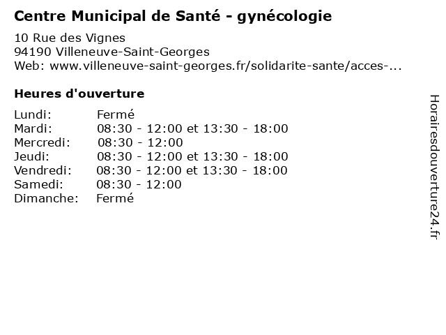 1 Centre Municipal de Santé - Gynécologie (Distance: 8,01 km) 12/14 Rue du Général-de-Gaulle, 94400 Vitry-sur-Seine bureau, centre, consultation, de, dr, gynécologie, maladie, med, municipal, médecin, médecine, pratique, santé, thérapie, traitement 2 Centre Municipal de Santé - Gynécologie (Distance: 9,81 km) 22 Rue Henri Barbusse, 94260 Fresnes bureau, centre, consultation, de, dr, gynécologie, maladie, med, municipal, médecin, médecine, pratique, santé, thérapie, traitement 3 Centre Municipal de Santé - Gynécologie (Distance: 17,05 km) 35 Avenue Georges Clémenceau, 93260 Les Lilas bureau, centre, consultation, de, dr, gynécologie, maladie, med, municipal, médecin, médecine, pratique, santé, thérapie, traitement 4 Centre Municipal de Santé - Gynécologie (Distance: 18,77 km) 38 Avenue de la République, 93140 Bondy bureau, centre, consultation, de, dr, gynécologie, maladie, med, municipal, médecin, médecine, pratique, santé, thérapie, traitement 5 Centre Municipal de Santé (Distance: 0,00 km) 10 Rue des Vignes, 94190 Villeneuve-Saint-Georges bureau, centre, consultation, de, dr, maladie, med, municipal, médecin, médecine, pratique, santé, thérapie, traitement 6 Centre Municipal de Santé - médecine générale (Distance: 0,00 km) 10 Rue des Vignes, 94190 Villeneuve-Saint-Georges bureau, centre, consultation, de, dr, générale, maladie, med, municipal, médecin, médecine, pratique, santé, thérapie, traitement |