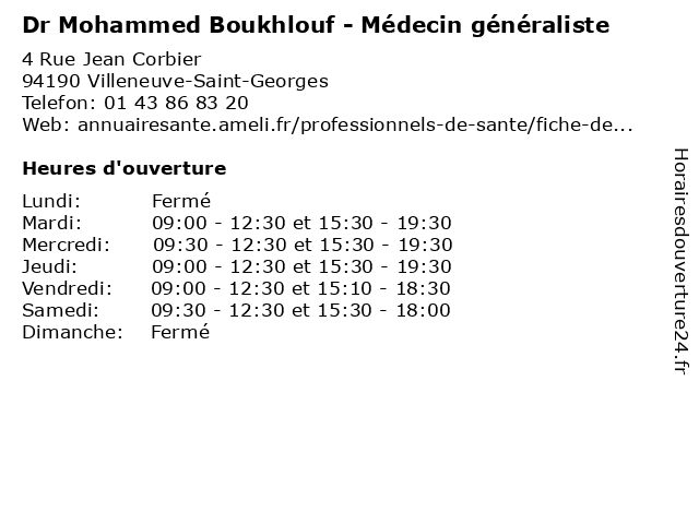 | Mardi | 09:00-12:30 et 15:30-19:30 |