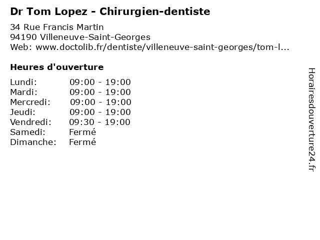 | 1 Garage Auto Tom 94 (Distance: 3,12 km) 79 Avenue de la République, 94290 Villeneuve-le-Roi 94, auto, automobile, entretien, garage, montage, pneus, réparation, tom, vidange 2 Bar-Tabac le Tom Tip (Distance: 3,81 km) 13 Place du Soleil, 91230 Montgeron alcool, bar, bière, boisson, bonbons, cadeau, cafe, cigarette, journal, le, loto, pmu, tabac, tip, tom, vin 3 Tom Pouce Montgeron (Distance: 4,09 km) 2 Rue Docteur Besson, 91230 Montgeron caregivers houses, child care, family home, home care, kindergartens, micro-nurseries, montgeron, parental home, pouce, tom 4 Dr Carlota Lopez - Chirurgien-dentiste - secrétariat (Distance: 6,72 km) 37 Avenue du 18 avril 1944, 91200 Athis-Mons carlota, chirurgien, consultation, dentiste, docteur, dr, lopez, med, médecin, médecine, secrétariat, traitement 5 Dr Océane Lopez - Chirurgien-dentiste - secrétariat (Distance: 11,66 km) 12 Place Pierre Semard, 94350 Villiers-sur-Marne chirurgien, consultation, dentiste, docteur, dr, lopez, med, médecin, médecine, océane, secrétariat, traitement 6 Snack Dom Tom (Distance: 12,14 km) Perfect Snack, 91000 Evry dom, magloire, maurice, platee, restaurants, snack, tom |