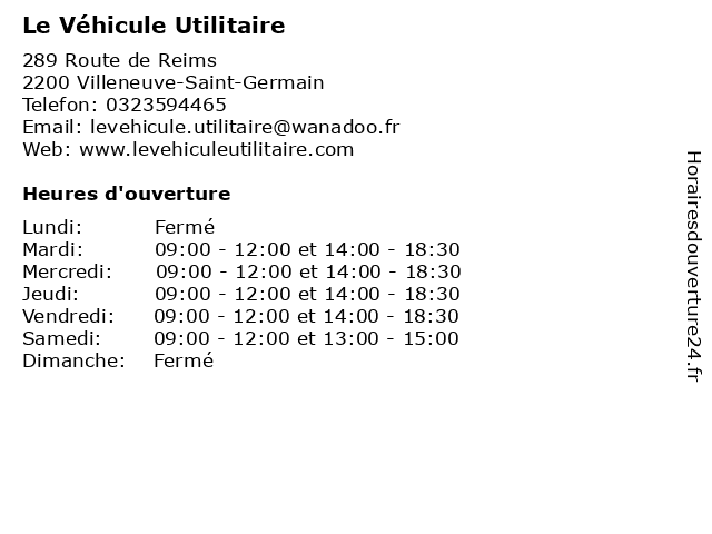 | Mardi | 09:00-12:00 et 14:00-18:30 |