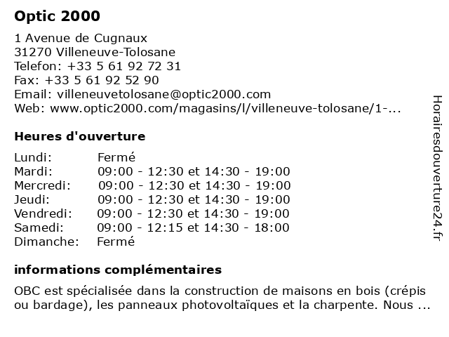 1 Optic 2000 (Distance: 5,81 km) 1 Boulevard Jean Gay, 31170 Tournefeuille 2000, lunettes, optic, santé, solaires 2 Optic 2000 (Distance: 9,53 km) 3 Passage du Ségala, 31770 Colomiers 2000, lunettes, optic, santé, solaires 3 Optic 2000 (Distance: 10,79 km) 15 Avenue Tolosane, 31520 Ramonville-Saint-Agne 2000, lunettes, optic, santé, solaires 4 Optic 2000 (Distance: 15,83 km) 7 Avenue Pierre Coupeau, 31130 Balma 2000, lunettes, optic, santé, solaires 5 Optic 2000 (Distance: 16,09 km) . Route de Revel, 31650 Saint-Orens-de-Gameville 2000, lunettes, optic, santé, solaires 6 Optic 2000 (Distance: 17,02 km) Cc Du Moulin a Vent, 31700 Mondonville 2000, divers, détail, magasins, mondoptic, nra, optic |