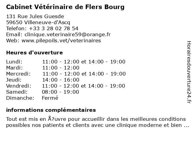 | Mercredi | 11:00-12:00 et 14:00-19:00 |