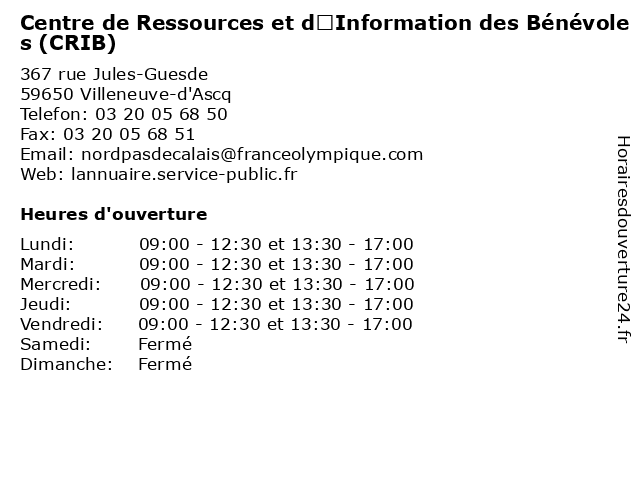 | Mardi | 09:00-12:30 et 13:30-17:00 |