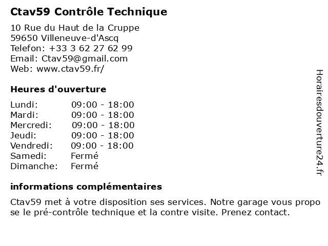 1 Centre contrôle technique DEKRA (Distance: 0,33 km) 14 Rue du Frenelet, 59650 Villeneuve-d'Ascq 4x4, camping car, centre, collection, contrôle, dekra, diesel, electrique, essence, gazole, suv, technique, utilitaire, voiture 2 Centre contrôle technique NORISKO (Distance: 3,04 km) Rue Chanzy, 59260 Lezennes 4x4, camping car, centre, collection, controle technique, contrôle, diesel, electrique, essence, gazole, norisko, suv, technique, utilitaire, villeneuve d 'ascq, voiture 3 Auto Securitas - Contrôle Technique 59 (Distance: 4,30 km) 36 rue de la Gare, 59170 Croix 59, auto, autosecuritas, contrôle, examen, securitas, technique, visite, véhicule 4 ITGA - Institut Technique des Gaz et de l'Air (Distance: 4,68 km) 31 Avenue de l’Harmonie, 59650 Villeneuve-d'Ascq air, de, des, essaie, et, gaz, industriel, institut, itga, l'air, laboratoire, technique 5 AS Autosécurité Contrôle Technique (Distance: 4,76 km) 6 Place, 59800 LILLE as, autosécurité, contrôle, technique 6 Centre contrôle technique AUTOCONTROL (Distance: 4,91 km) 1 Rue de Vieille Aventure, 59000 Lille 4x4, autocontrol, camping car, centre, collection, contrôle, diesel, electrique, essence, gazole, suv, technique, utilitaire, voiture |
