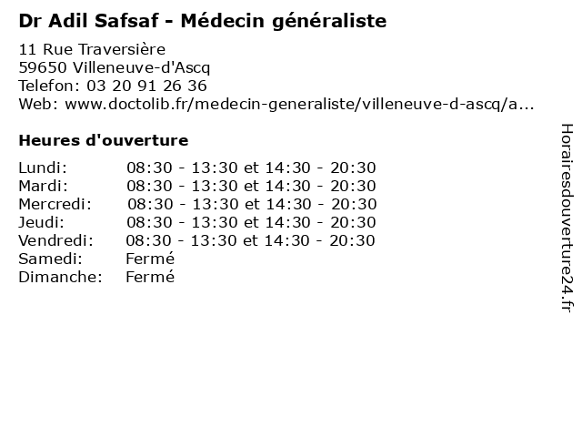 | Mardi | 08:30-13:30 et 14:30-20:30 |