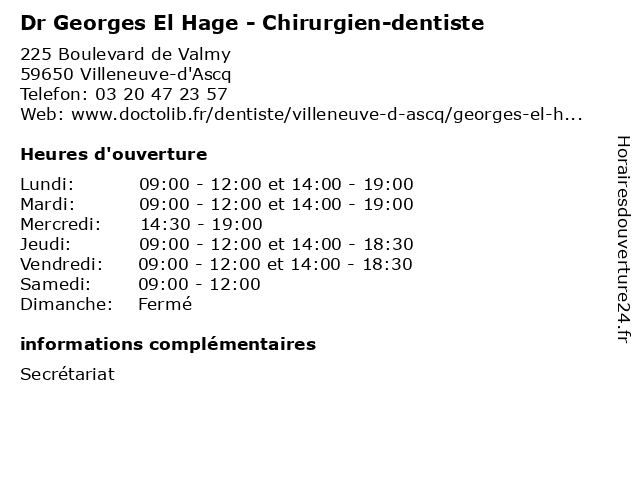 | Lundi | 09:00-12:00 et 14:00-19:00 |