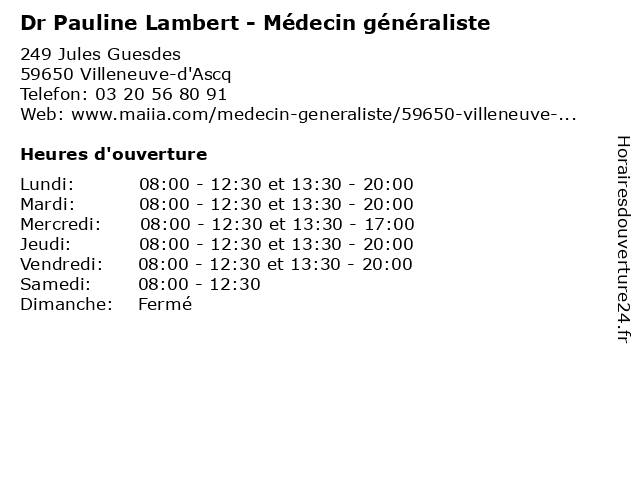 | Lundi | 08:00-12:30 et 13:30-20:00 |