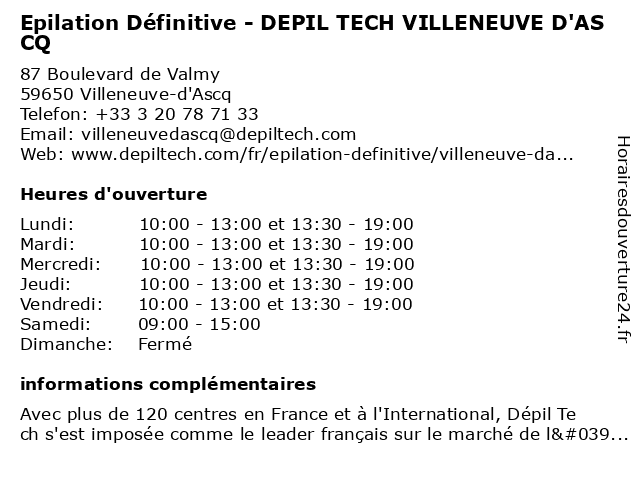 2 Epilation Définitive - DEPIL TECH LILLE GARE FLANDRES (Distance: 4,85 km) 26 Rue du Molinel, 59000 Lille beauté, cosmétique, depil, définitive, dépilation, dépilation durable, dépilation définitive, dépilation définitive pas cher, epilation, esthétique, flandres, gare, lille, soin anti-âge, tech 3 Brice Lille Wasquehal- Fermeture définitive (Distance: 7,34 km) Centre Commercial Carrefour, 59290 WASQUEHAL brice, définitive, fermeture, lille, magasin de smokings, magasin de t-shirts, magasin d’accessoires de mode, mode, wasquehal 4 Epilation Définitive - DEPIL TECH WASQUEHAL (Distance: 7,66 km) 33-37 Rue du Molinel, 59290 Wasquehal beauté, cosmétique, depil, définitive, dépilation, dépilation durable, dépilation définitive, dépilation définitive pas cher, epilation, esthétique, soin anti-âge, tech, wasquehal 5 High Tech Store (Distance: 7,92 km) 87b Rue de l'Amiral Courbet, 59170 Croix high, high tech store, mobile, portable, réparation, store, tech 6 Epilation Définitive - DEPIL TECH ROUBAIX CENTRE-VILLE (Distance: 9,08 km) 20 Ter Grande Rue, 59100 Roubaix beauté, centre, cosmétique, depil, définitive, dépilation, dépilation durable, dépilation définitive, dépilation définitive pas cher, epilation, esthétique, roubaix, soin anti-âge, tech, ville |