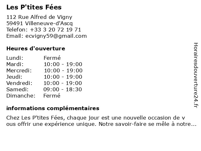 | Lundi | Fermé |