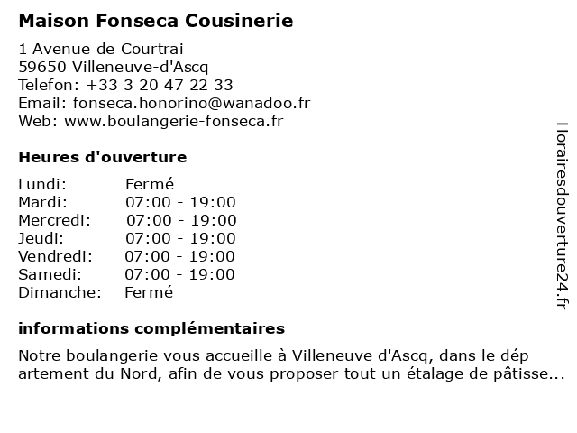 | Lundi | Fermé |