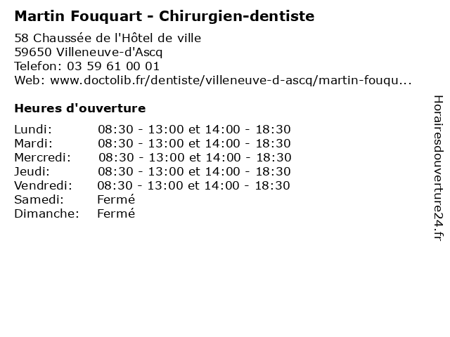 | Mardi | 08:30-13:00 et 14:00-18:30 |