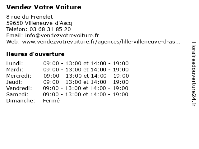 | Mardi | 09:00-13:00 et 14:00-19:00 |
