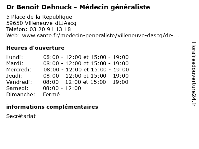 | Mercredi | 08:00-12:00 et 15:00-19:00 |