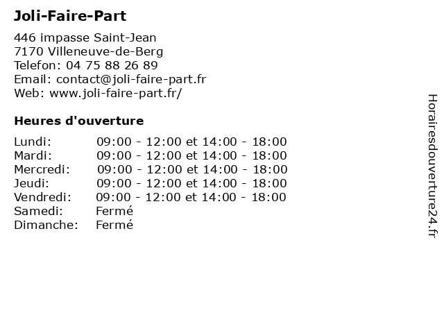 | Samedi | Fermé |