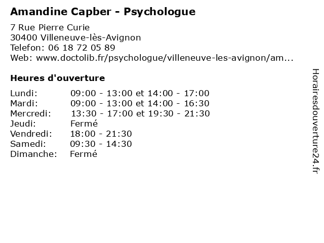 | Mardi | 09:00-13:00 et 14:00-16:30 |