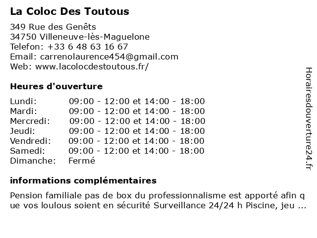 | Lundi | 09:00-12:00 et 14:00-18:00 |