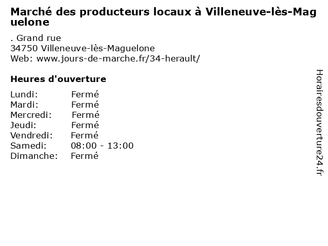 1 Marché à Villeneuve-lès-Maguelone (Distance: 0,14 km) . Place du Marché, 34750 Villeneuve-lès-Maguelone frutas, hortalizas, lès, maguelone, marché, mercado, verduras, villeneuve 2 Marché à Palavas-les-Flots (Distance: 5,34 km) . Rue Maguelona, 34250 Palavas Les Flots flots, frutas, hortalizas, les, marché, mercado, palavas, verduras 3 Marché à Mireval (Distance: 5,67 km) . Paul Doumer, 34110 Mireval frutas, hortalizas, marché, mercado, mireval, verduras 4 Marché à Palavas-les-Flots (Distance: 5,69 km) . Rue Saint Roch, 34250 Palavas Les Flots flots, frutas, hortalizas, les, marché, mercado, palavas, verduras 5 Marché à Cournonterral (Distance: 6,42 km) 94 Rue le greco Montpellier, 34660 Cournonterral cournonterral, frutas, hortalizas, marché, mercado, verduras 6 Marché Saint Martin à Montpellier (Distance: 6,80 km) . Rue Jean Vachet, 34000 Montpellier frutas, hortalizas, marché, martin, mercado, montpellier, saint, verduras |