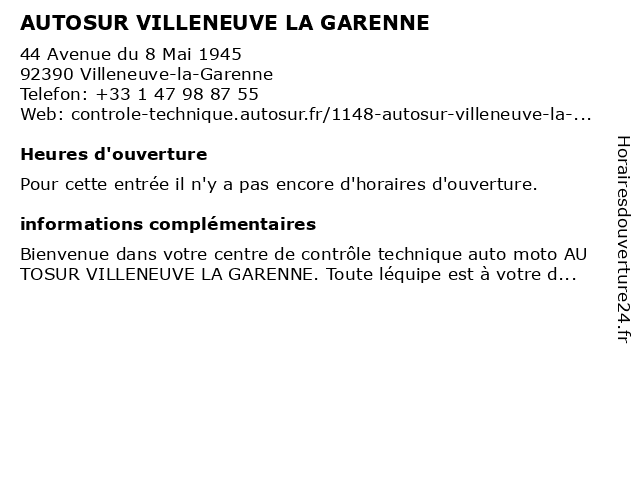 | Appeler AUTOSUR VILLENEUVE LA GARENNE | |