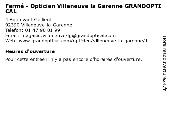 | Appeler Fermé - Opticien Villeneuve la Garenne GRANDOPTICAL | |